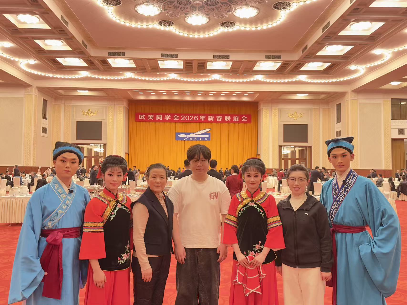 2月3日,欧美同学会2026年新春联谊会在北京人民大会堂隆重举行,学院戏曲与曲艺专业2024级研究生王宇祥、2025级研究生段婷慧,携手黄梅戏表演专业2025届毕业生汪金娟及2023级学生赵士凡,共同演绎《欢天喜地闹花灯》。学子们凭借扎实的专业功底,将黄梅戏的灵动与新春的喜庆深度融合,让中外嘉宾近距离领略中华传统文化与黄梅戏艺术的深厚底蕴,进一步拓宽了中外文化交流渠道。