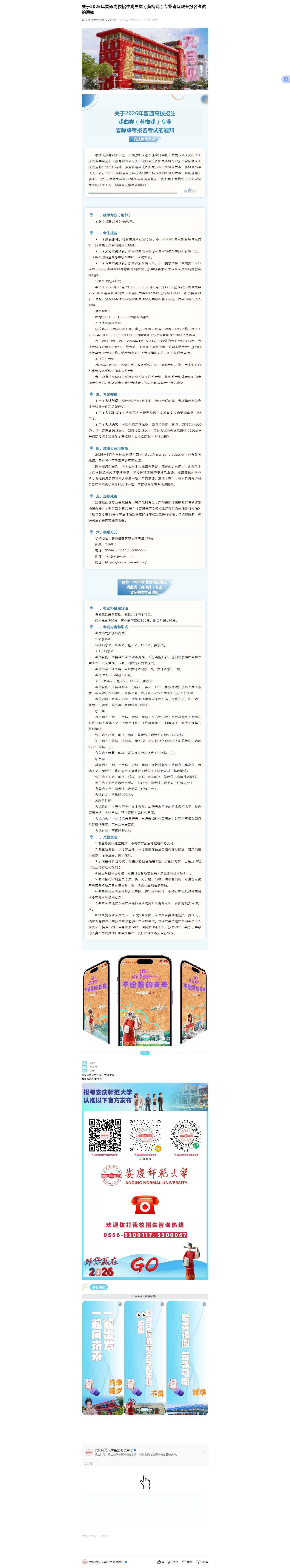 关于2026年普通高校招生戏曲类(黄梅戏)专业省际联考报名考试的通知