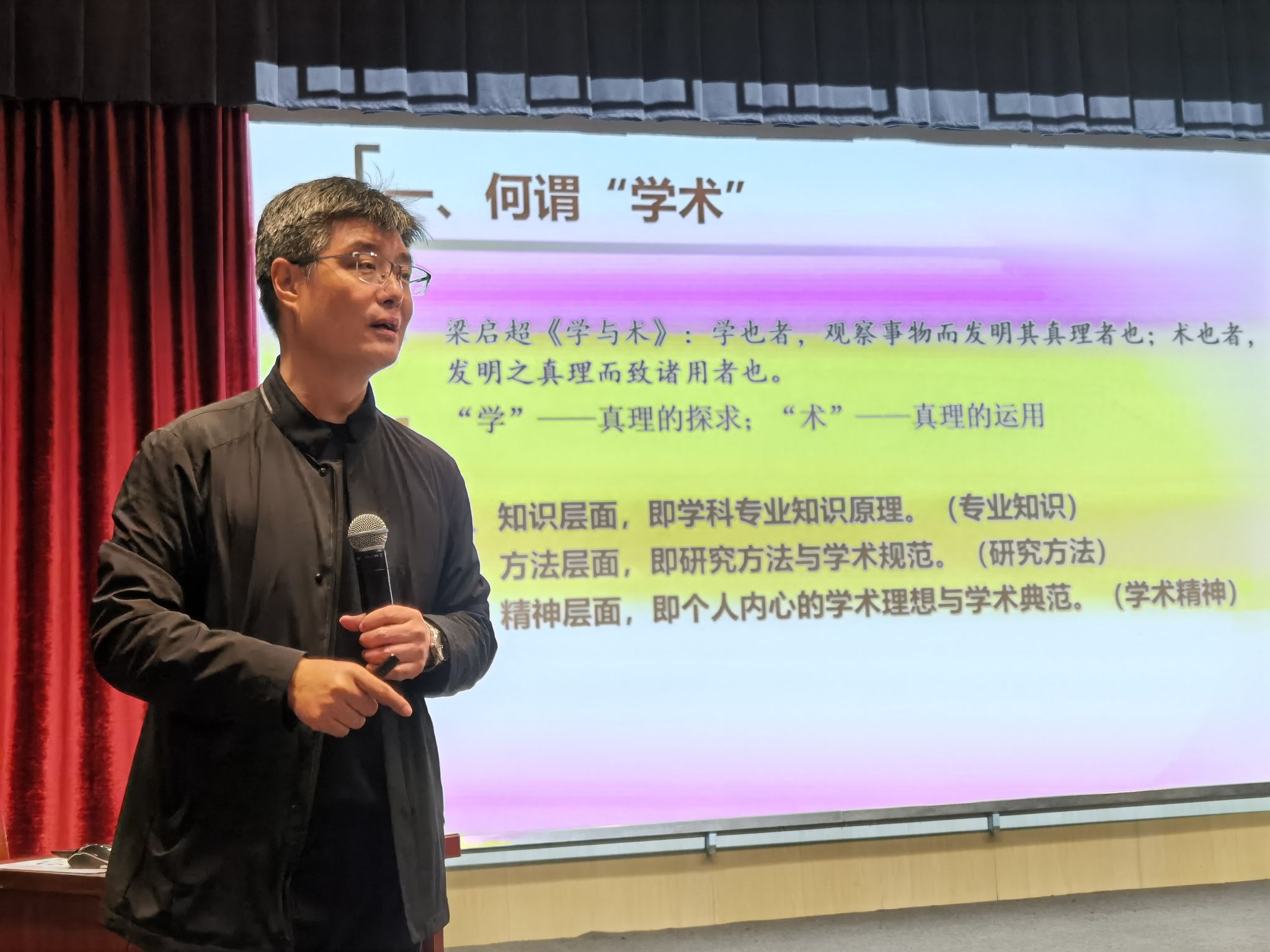 项念东教授以“何谓‘学术’”为切入点,援引梁启超《学与术》中“学为真理探求,术为真理运用”的观点,从知识、方法、精神三个层面剖析学术的核心内涵,强调学术研究既需扎实的专业知识与规范的研究方法,更要坚守内心的学术理想与典范。