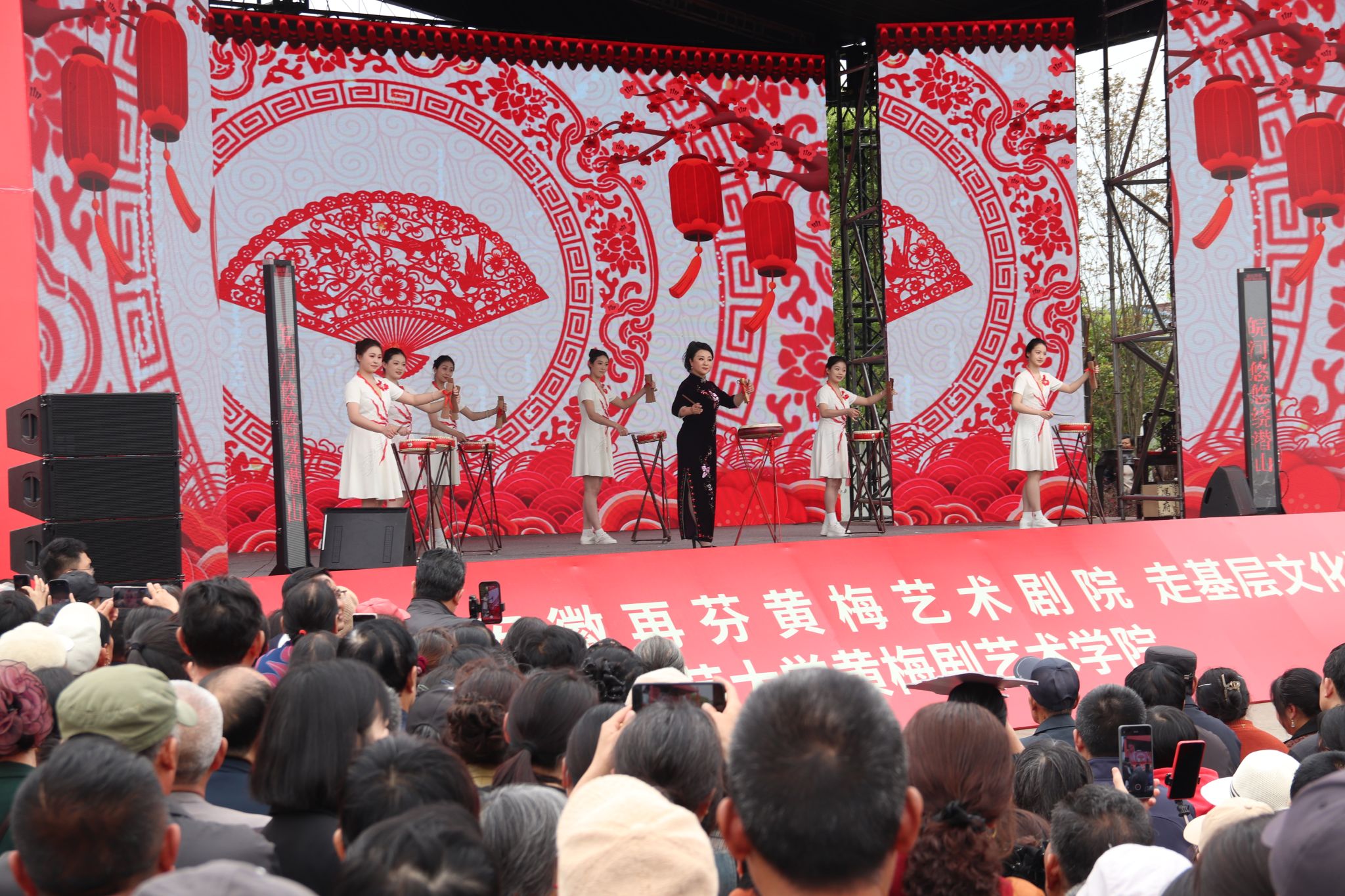 此次演出由黄梅戏表演艺术家、我院学术院长韩再芬领衔,学院教师余淑华、汪莉、李俊、丁飞与青年学子联袂登台,为当地戏迷献上一场黄梅戏文化盛宴。现场座无虚席、掌声不断,充分展现戏曲之乡深厚的文化底蕴与群众热情。
